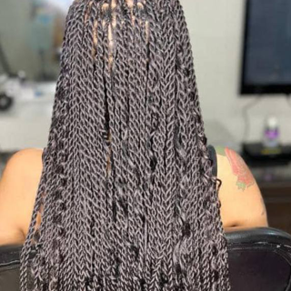 The braiding style is similar to box braids, but with two strands instead of three. Also known as rope twist